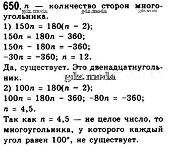 ОТВЕТ на задание № 650 Учебник по Геометрии 8 класс Мерзляк Алгоритм успеха