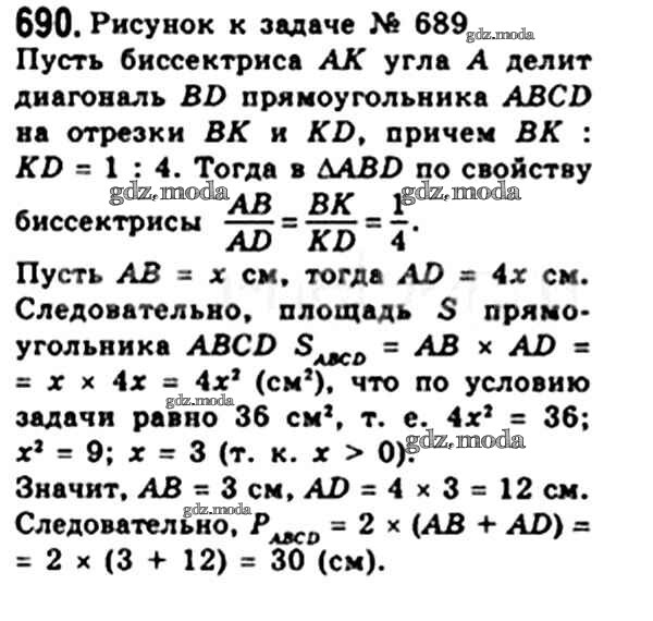 ОТВЕТ на задание № 690 Учебник по Геометрии 8 класс Мерзляк Алгоритм успеха