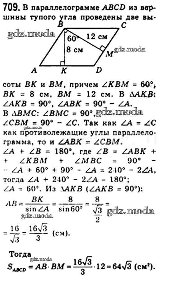 ОТВЕТ на задание № 709 Учебник по Геометрии 8 класс Мерзляк Алгоритм успеха