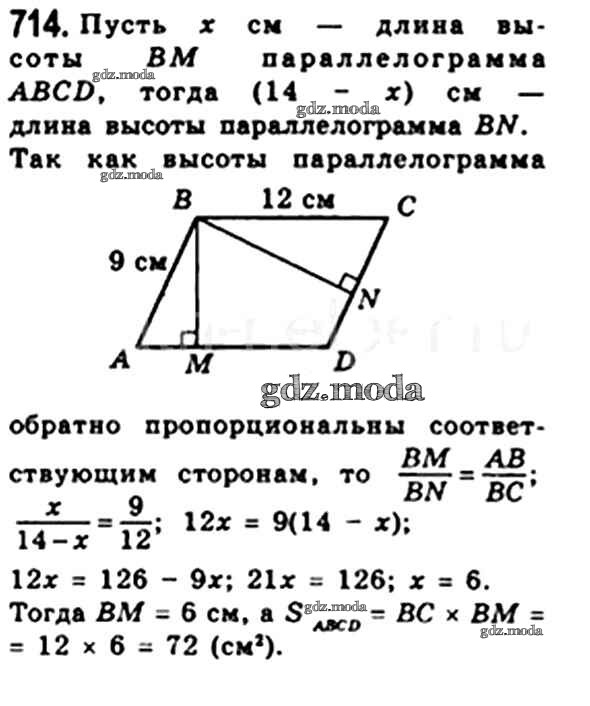 ОТВЕТ на задание № 714 Учебник по Геометрии 8 класс Мерзляк Алгоритм успеха