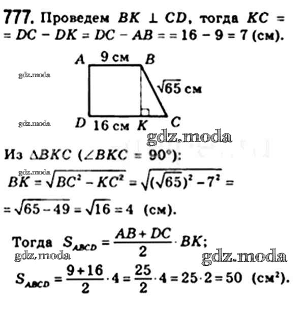 ОТВЕТ на задание № 777 Учебник по Геометрии 8 класс Мерзляк Алгоритм успеха