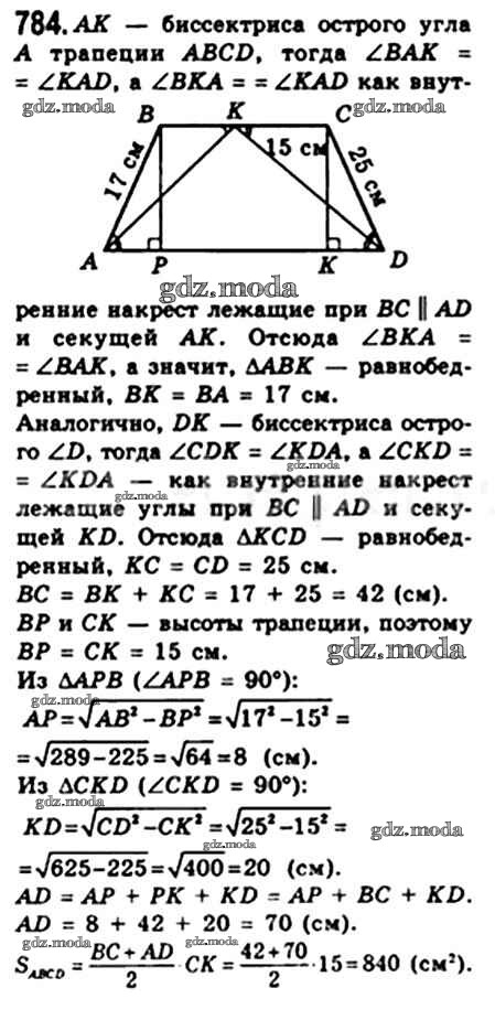 ОТВЕТ на задание № 784 Учебник по Геометрии 8 класс Мерзляк Алгоритм успеха