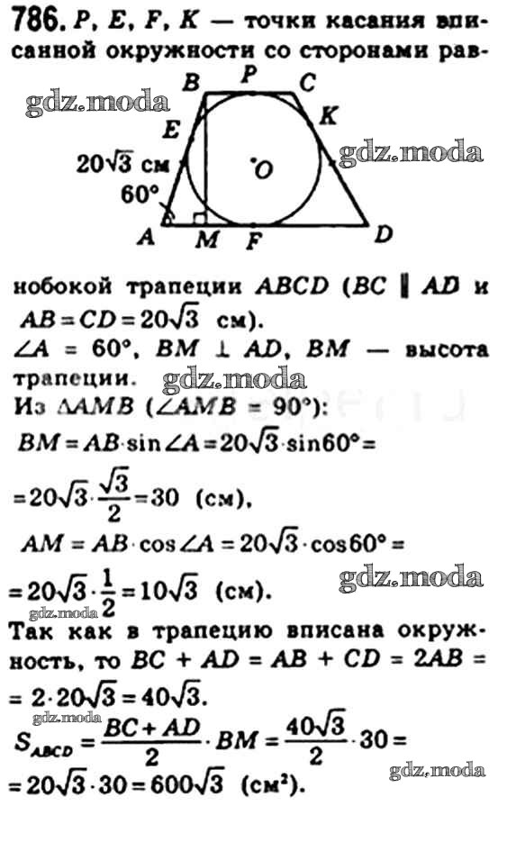ОТВЕТ на задание № 786 Учебник по Геометрии 8 класс Мерзляк Алгоритм успеха