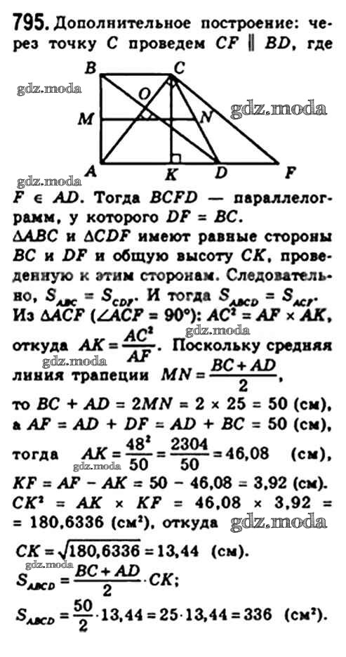 ОТВЕТ на задание № 795 Учебник по Геометрии 8 класс Мерзляк Алгоритм успеха