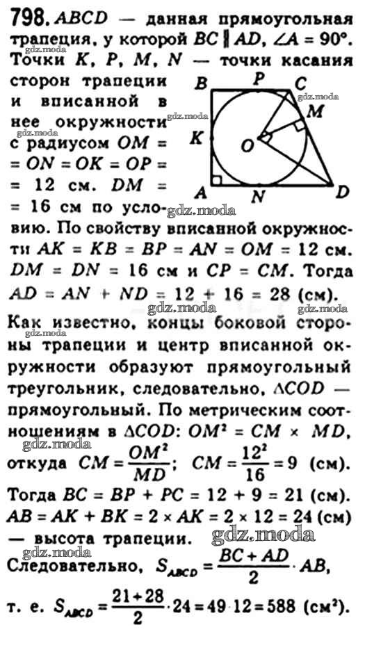 ОТВЕТ на задание № 798 Учебник по Геометрии 8 класс Мерзляк Алгоритм успеха