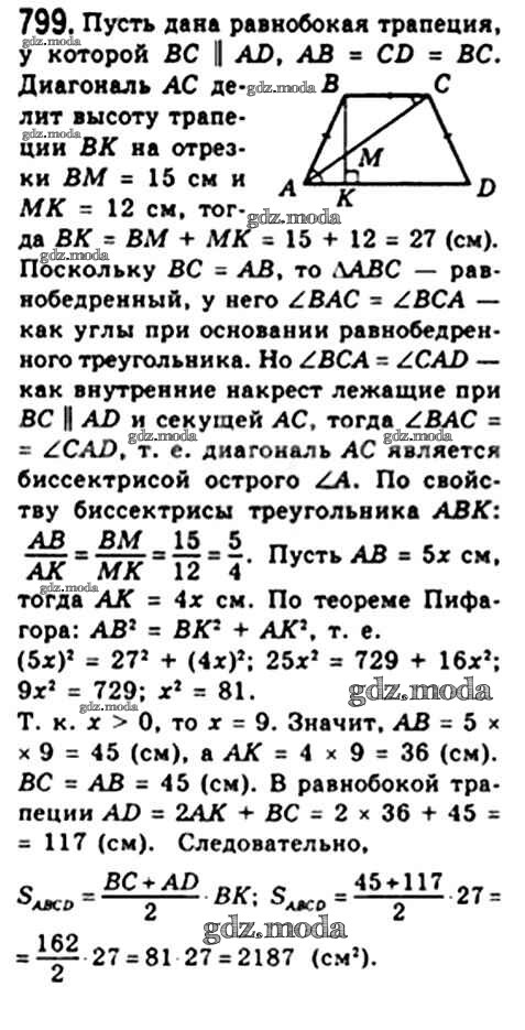 ОТВЕТ на задание № 799 Учебник по Геометрии 8 класс Мерзляк Алгоритм успеха