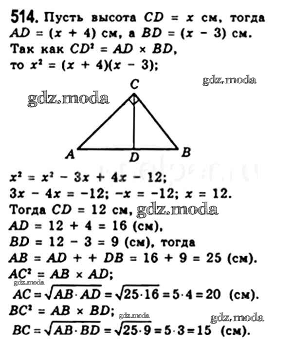 ОТВЕТ на задание № 514 Учебник по Геометрии 8 класс Мерзляк Алгоритм успеха