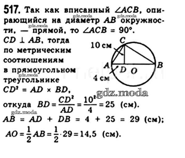 ОТВЕТ на задание № 517 Учебник по Геометрии 8 класс Мерзляк Алгоритм успеха