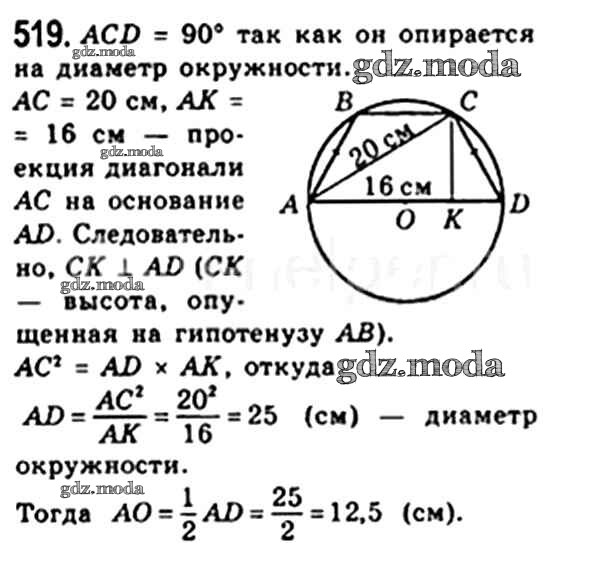 ОТВЕТ на задание № 519 Учебник по Геометрии 8 класс Мерзляк Алгоритм успеха