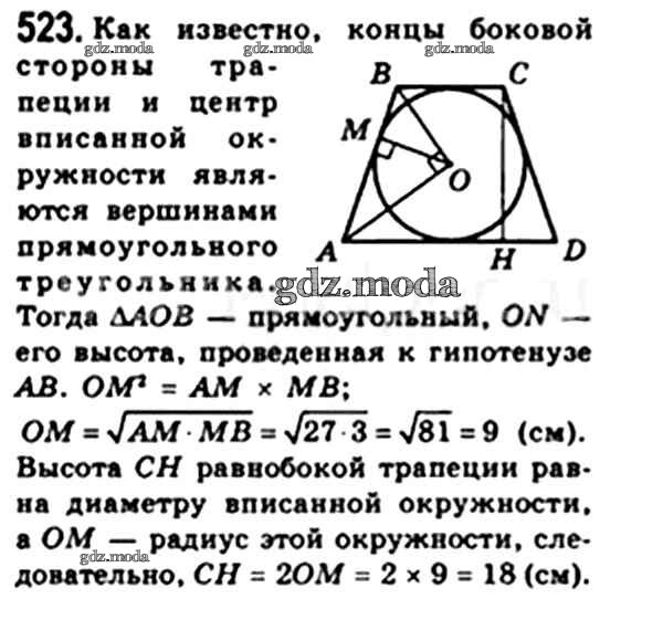 ОТВЕТ на задание № 523 Учебник по Геометрии 8 класс Мерзляк Алгоритм успеха