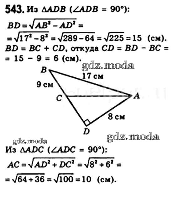 ОТВЕТ на задание № 543 Учебник по Геометрии 8 класс Мерзляк Алгоритм успеха