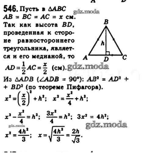 ОТВЕТ на задание № 546 Учебник по Геометрии 8 класс Мерзляк Алгоритм успеха
