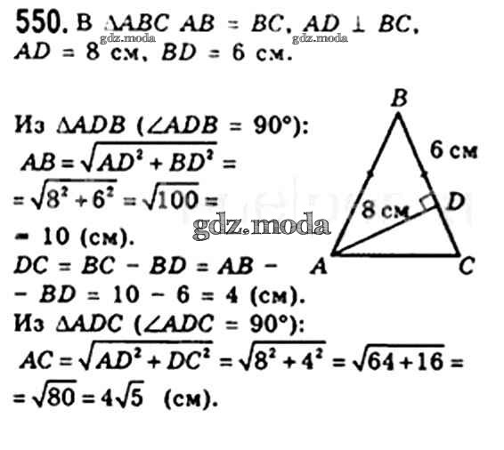 ОТВЕТ на задание № 550 Учебник по Геометрии 8 класс Мерзляк Алгоритм успеха