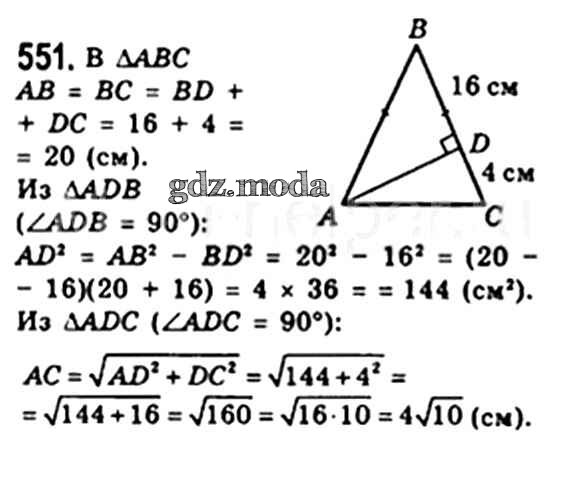 ОТВЕТ на задание № 551 Учебник по Геометрии 8 класс Мерзляк Алгоритм успеха