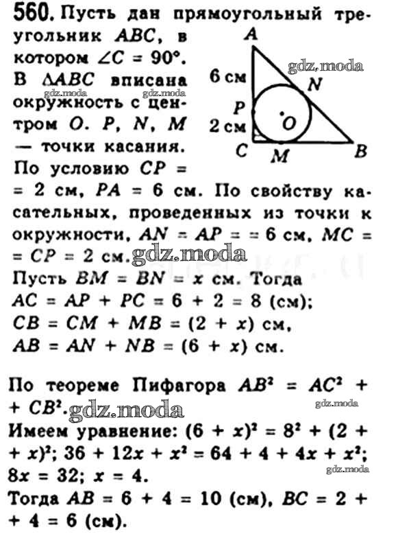 ОТВЕТ на задание № 560 Учебник по Геометрии 8 класс Мерзляк Алгоритм успеха