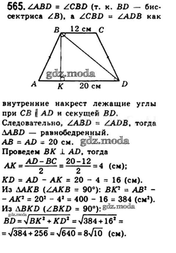ОТВЕТ на задание № 565 Учебник по Геометрии 8 класс Мерзляк Алгоритм успеха