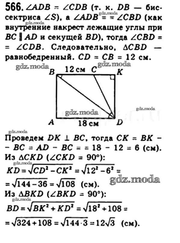 ОТВЕТ на задание № 566 Учебник по Геометрии 8 класс Мерзляк Алгоритм успеха