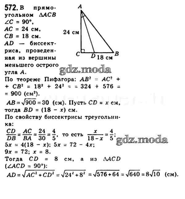 ОТВЕТ на задание № 572 Учебник по Геометрии 8 класс Мерзляк Алгоритм успеха