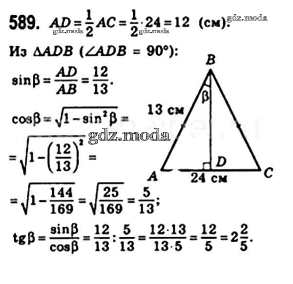 ОТВЕТ на задание № 589 Учебник по Геометрии 8 класс Мерзляк Алгоритм успеха