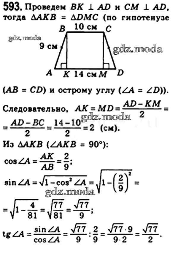 ОТВЕТ на задание № 593 Учебник по Геометрии 8 класс Мерзляк Алгоритм успеха