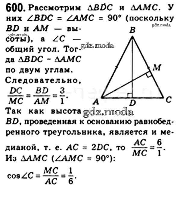 ОТВЕТ на задание № 600 Учебник по Геометрии 8 класс Мерзляк Алгоритм успеха