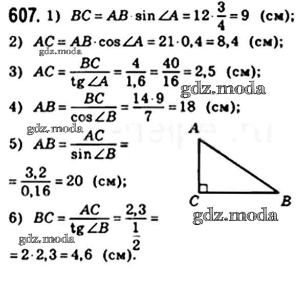 ОТВЕТ на задание № 607 Учебник по Геометрии 8 класс Мерзляк Алгоритм успеха