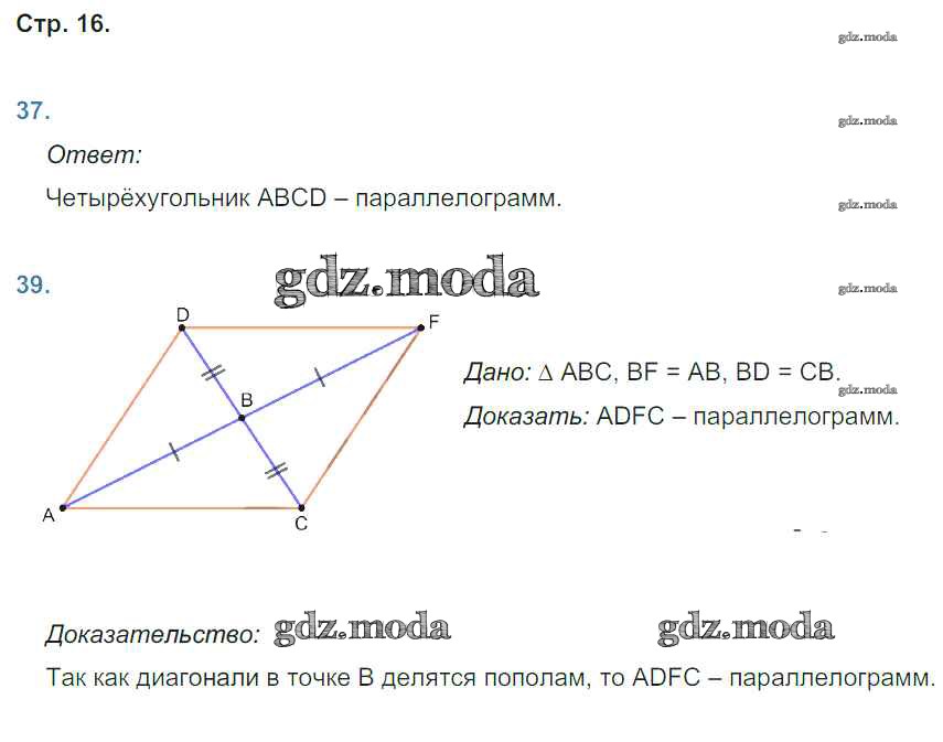 ОТВЕТ на задание № 16 Рабочая тетрадь по Геометрии 8 класс Мищенко УМК