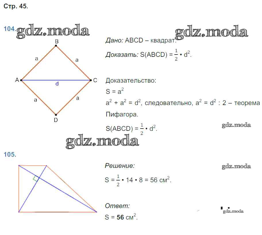 ГДЗ решение к заданию № 45 Геометрия 8 класс рабочая тетрадь Мищенко Т.М. (к уч. Атанасяна) Экзамен 2016 ФГОС бесплатно на гдз.мода!