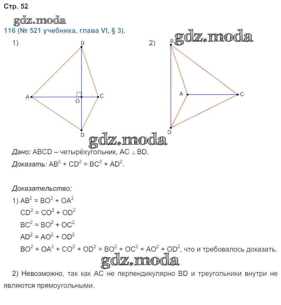 ГДЗ решение к заданию № 52 Геометрия 8 класс рабочая тетрадь Мищенко Т.М. (к уч. Атанасяна) Экзамен 2016 ФГОС бесплатно на гдз.мода!