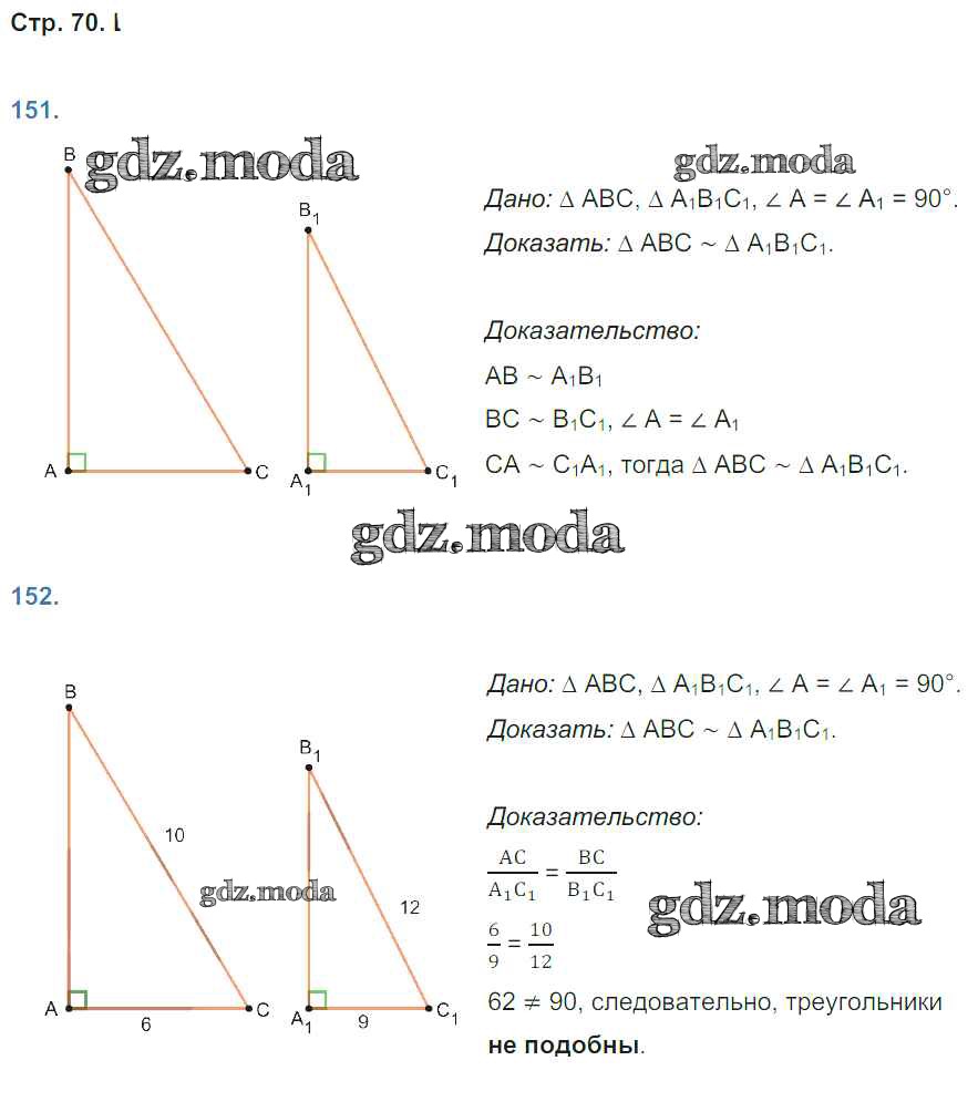 ГДЗ решение к заданию № 70 Геометрия 8 класс рабочая тетрадь Мищенко Т.М. (к уч. Атанасяна) Экзамен 2016 ФГОС бесплатно на гдз.мода!