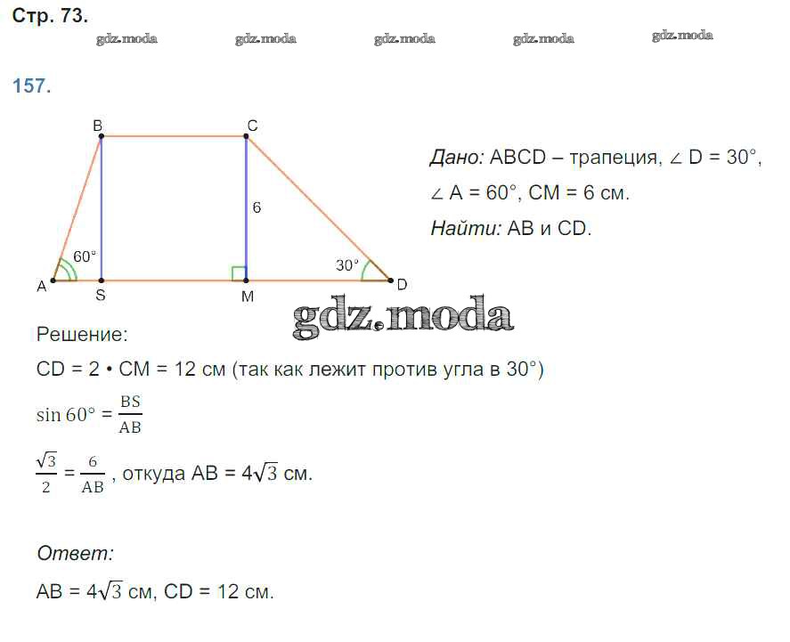 ОТВЕТ на задание № 73 Рабочая тетрадь по Геометрии 8 класс Мищенко УМК