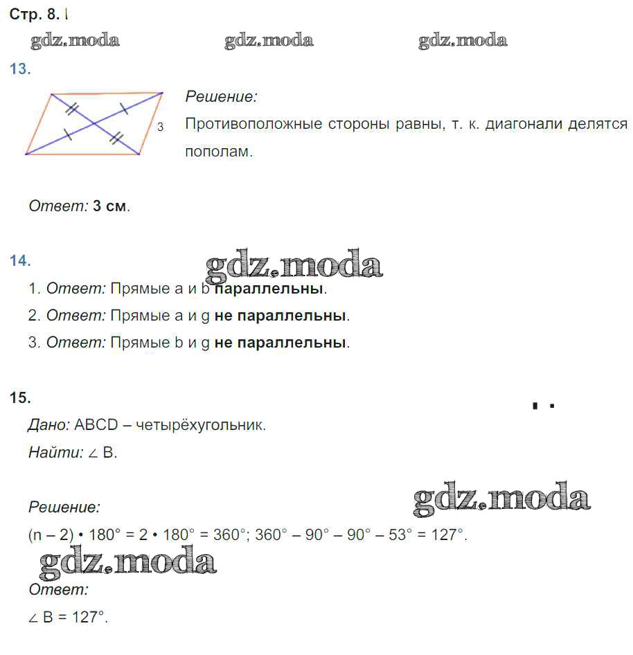 ОТВЕТ на задание № 8 Рабочая тетрадь по Геометрии 8 класс Мищенко УМК