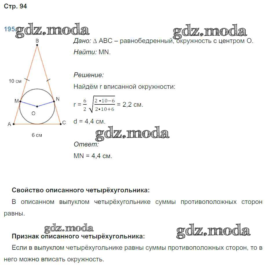 ОТВЕТ на задание № 94 Рабочая тетрадь по Геометрии 8 класс Мищенко УМК