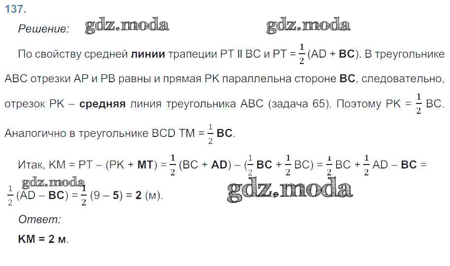 ОТВЕТ на задание № 137 Рабочая тетрадь по Геометрии 8 класс Атанасян