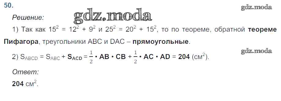 ОТВЕТ на задание № 50 Рабочая тетрадь по Геометрии 8 класс Атанасян