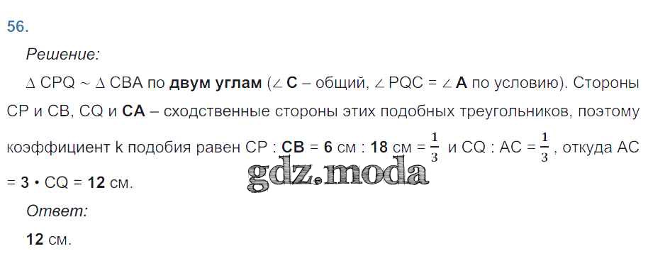 ОТВЕТ на задание № 56 Рабочая тетрадь по Геометрии 8 класс Атанасян