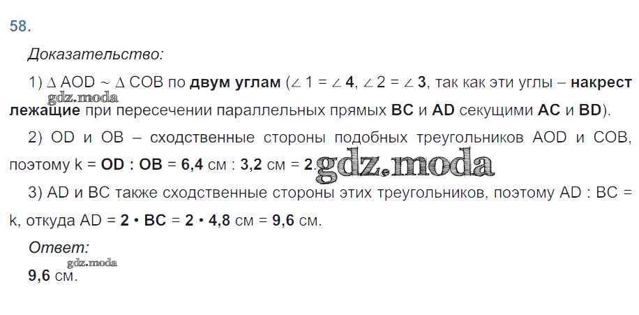 ОТВЕТ на задание № 58 Рабочая тетрадь по Геометрии 8 класс Атанасян