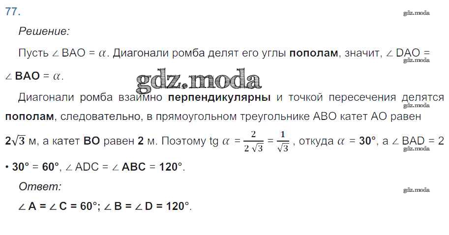 ГДЗ решение к заданию № 77 Геометрия 8 класс рабочая тетрадь Атанасян Л.С. Просвещение 2019 ФГОС бесплатно на гдз.мода!