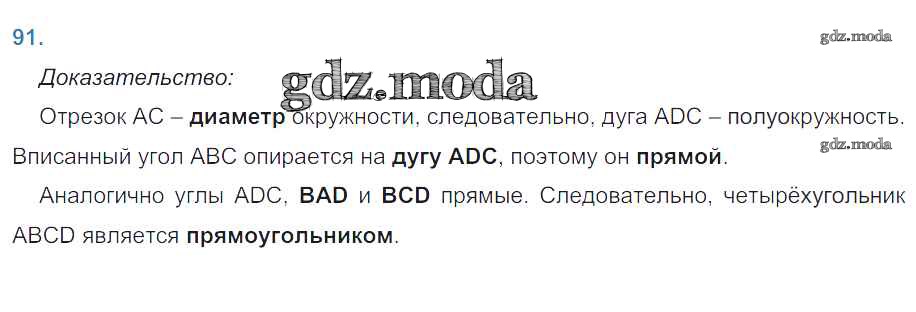 ГДЗ решение к заданию № 91 Геометрия 8 класс рабочая тетрадь Атанасян Л.С. Просвещение 2019 ФГОС бесплатно на гдз.мода!