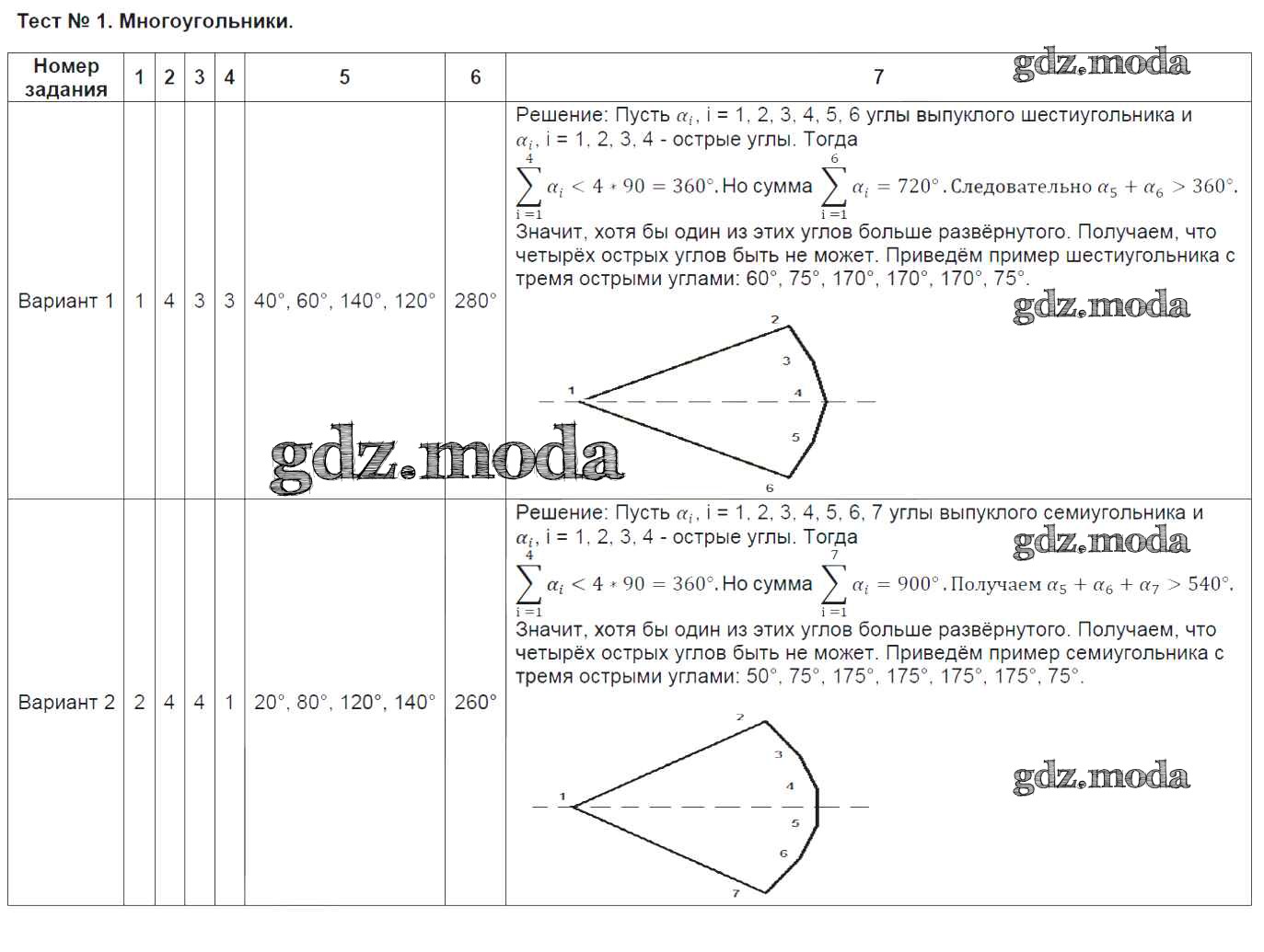 ГДЗ решение к заданию № Тест №1. Многоугольники Геометрия 8 класс контрольно-измерительные материалы Рязановский А.Р. Экзамен 2014 ФГОС бесплатно на гдз.мода!