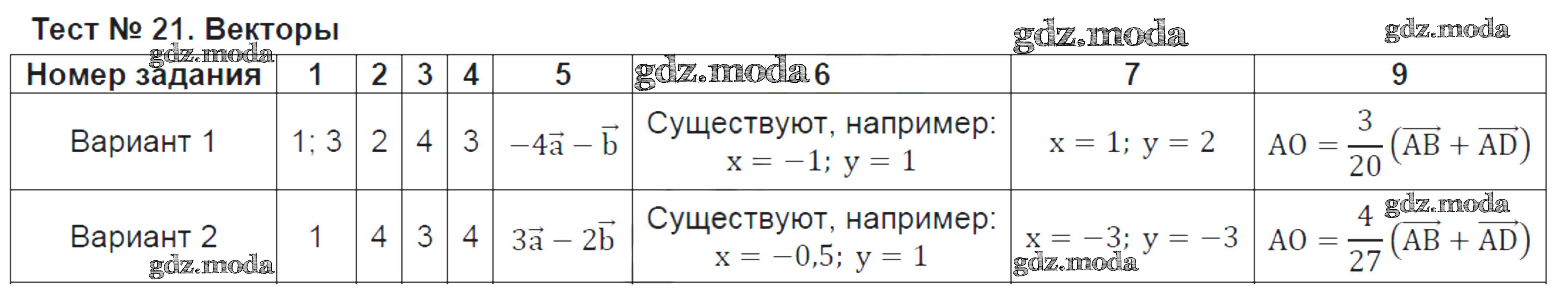 ГДЗ решение к заданию № Тест №21. Векторы Геометрия 8 класс контрольно-измерительные материалы Рязановский А.Р. Экзамен 2014 ФГОС бесплатно на гдз.мода!