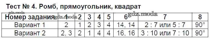 ГДЗ решение к заданию № Тест №4. Ромб, прямоугольник, квадрат Геометрия 8 класс контрольно-измерительные материалы Рязановский А.Р. Экзамен 2014 ФГОС бесплатно на гдз.мода!