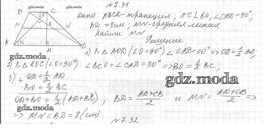 ОТВЕТ на задание № 31 Учебник по Геометрии 8 класс Мерзляк Алгоритм успеха Углубленный уровень