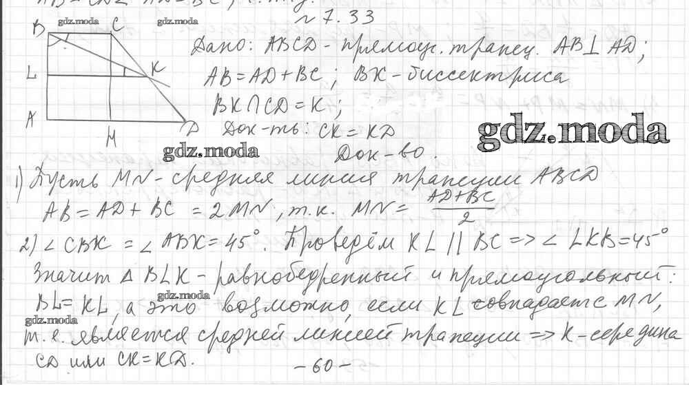 ОТВЕТ на задание № 33 Учебник по Геометрии 8 класс Мерзляк Алгоритм успеха Углубленный уровень