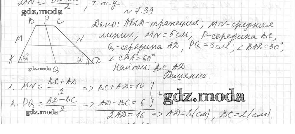 ОТВЕТ на задание № 39 Учебник по Геометрии 8 класс Мерзляк Алгоритм успеха Углубленный уровень