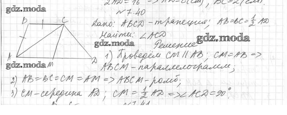 ОТВЕТ на задание № 40 Учебник по Геометрии 8 класс Мерзляк Алгоритм успеха Углубленный уровень