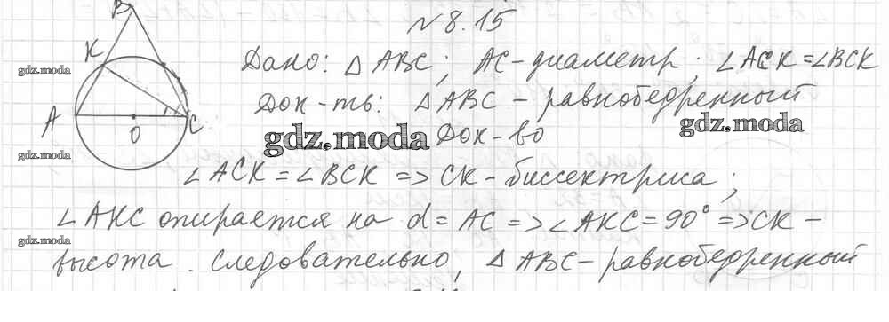 ГДЗ решение к заданию № 15 Геометрия 8 класс углубленное изучение Мерзляк А.Г. Вентана-граф 2020 Углубленный уровень ФГОС бесплатно на гдз.мода!
