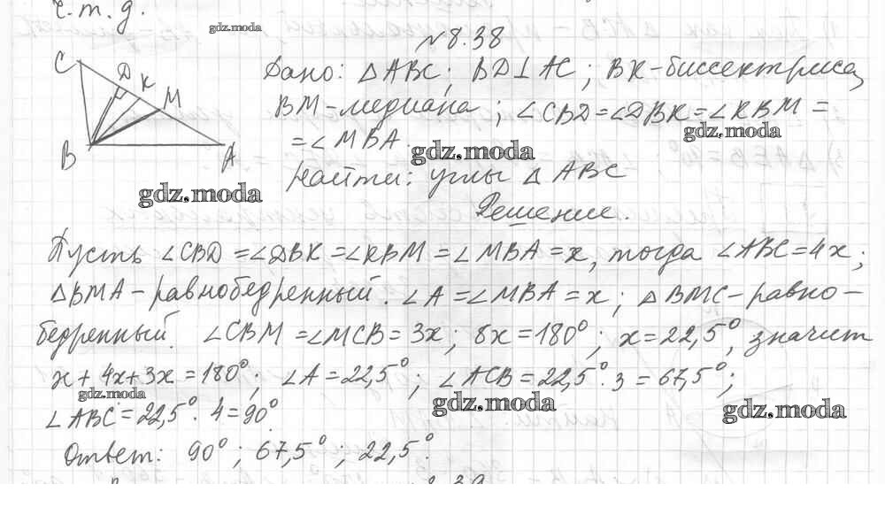 ОТВЕТ на задание № 38 Учебник по Геометрии 8 класс Мерзляк Алгоритм успеха Углубленный уровень