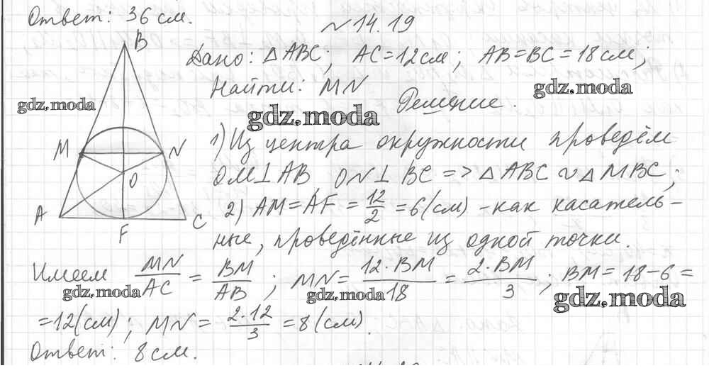 ОТВЕТ на задание № 19 Учебник по Геометрии 8 класс Мерзляк Алгоритм успеха Углубленный уровень