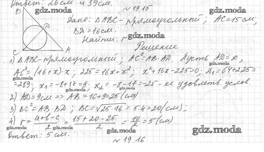 ОТВЕТ на задание № 15 Учебник по Геометрии 8 класс Мерзляк Алгоритм успеха Углубленный уровень